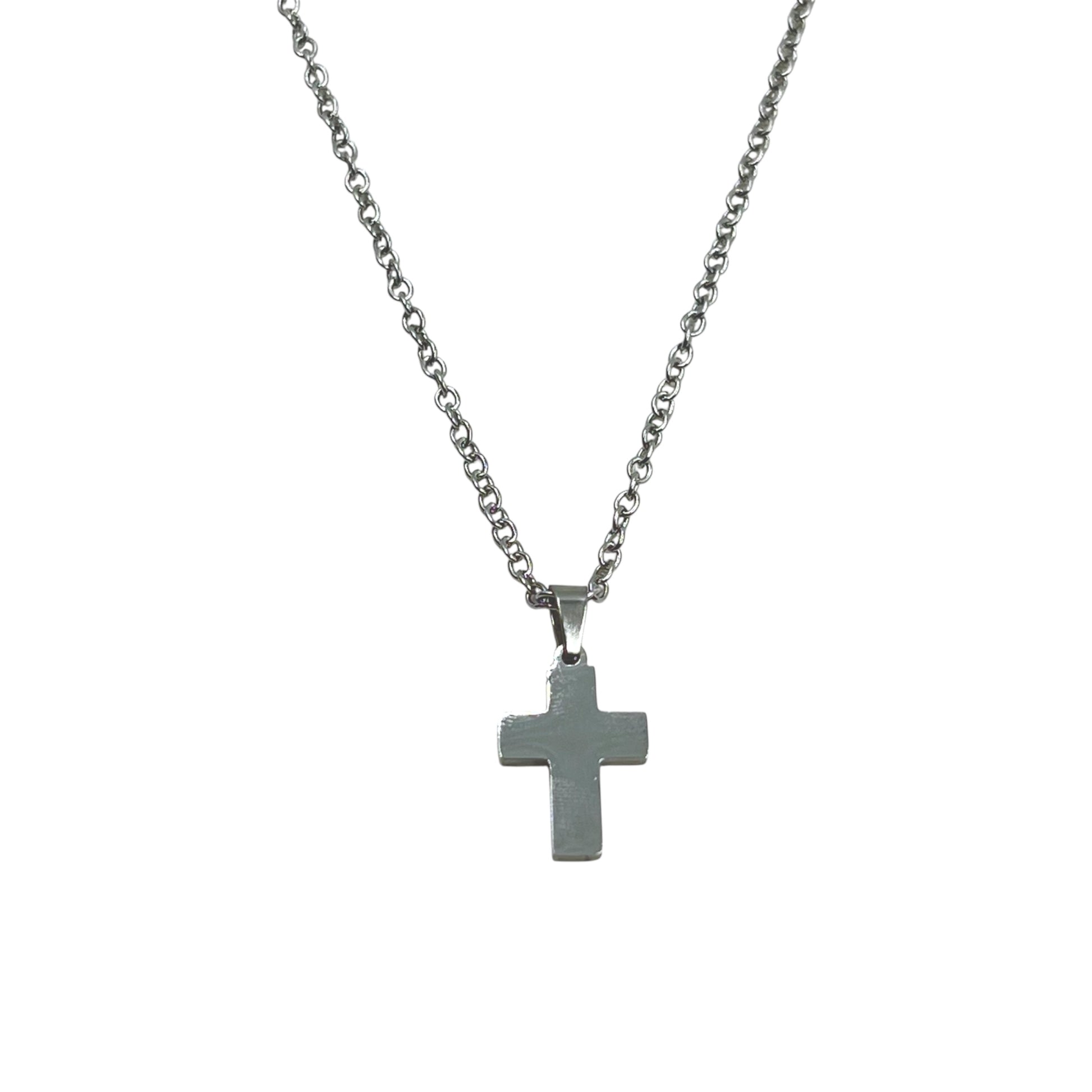 Este conjunto incluye una cadena de acero quirúrgico de 50 cm de longitud y un colgante en forma de cruz de 2x1.5 cm. Diseñado para quienes buscan un accesorio sólido y con valor simbólico Este material asegura un acabado brillante y una resistencia óptima al desgaste, siendo una elección ideal para regalos de comunión y confirmación.