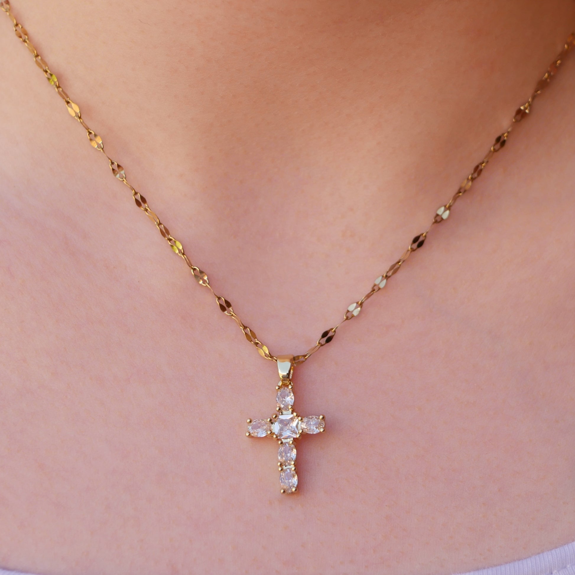 Cadena y cruz con piedras de cubic