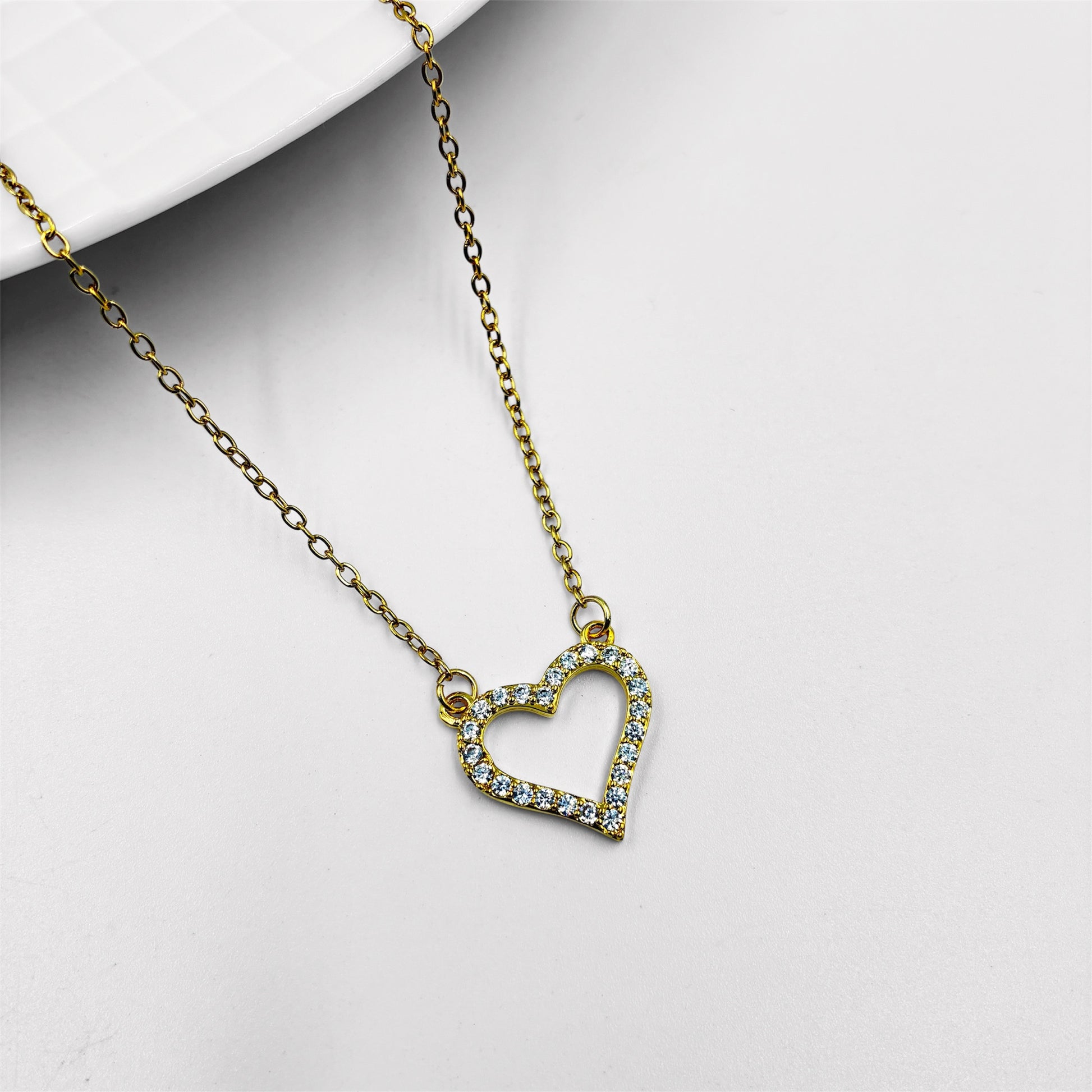 Cadena y dije corazon con strass en acero dorado