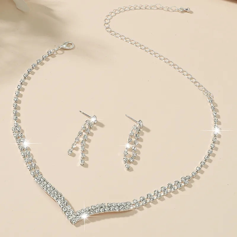 Este collar de doble hilera con piedras de strass blanco y aros colgantes es ideal para cumpleaños de 15, egresadas, madrinas o novias que buscan un accesorio elegante. Con un largo de 45 cm y 10 cm de alargue, ofrece un ajuste cómodo y versátil, aportando un brillo sofisticado para realzar cualquier atuendo en ocasiones especiales.