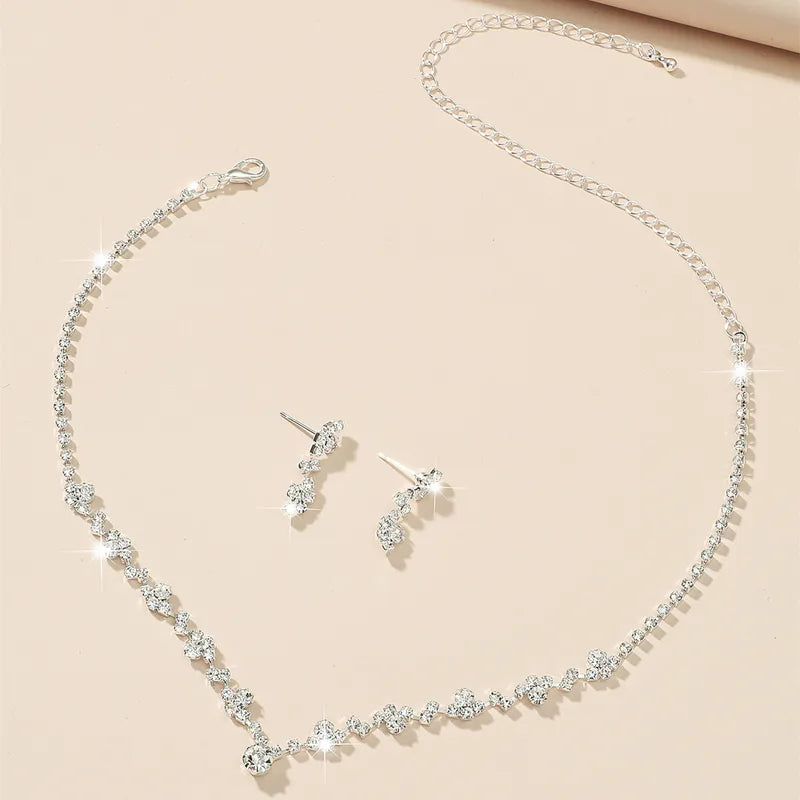 Este collar gargantilla con piedras de strass adornado con aros colgantes del mismo estilo, es el complemento perfecto para ocasiones especiales. Su diseño elegante realza cualquier look, ideal para quinceañeras, novias o egresadas que buscan un toque sofisticado y brillante en su noche memorable.