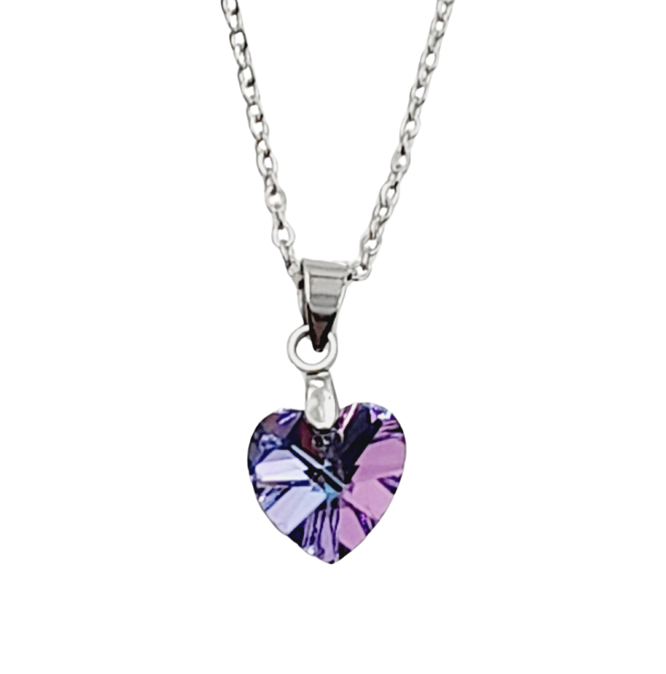 Este conjunto está realizado en acero quirúrgico y cuenta con un brillante corazón simil cristal en tonos celeste y rosa. Con una cadena de 45 cm y un alargue de 5 cm , es perfecto para quinceañeras o como regalo para ocasiones especiales.