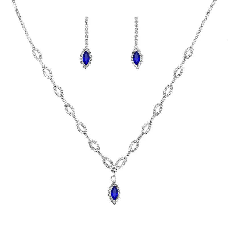 ¡Añade brillo y elegancia a tu atuendo con este conjunto de fiesta! Incluye un collar con dije y aros elaborados con strass blanco y azul en bijouterie. Perfecto para completar tu look de fiesta y hacer una declaración de estilo. ¡Haz que tus accesorios brillen con este impresionante conjunto!