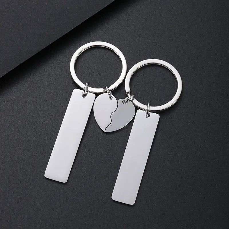 Este llavero elegante, diseñado para compartir, presenta una medalla en forma de corazón con acabado plateado que simboliza la conexión y el cariño. Su diseño refinado lo convierte en un accesorio ideal para regalar o para llevar un recuerdo especial siempre contigo. Perfecto para quienes valoran los detalles con significado y estilo.