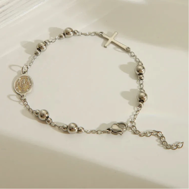 Pulsera de acero quirúrgico con cruz y medalla milagrosa