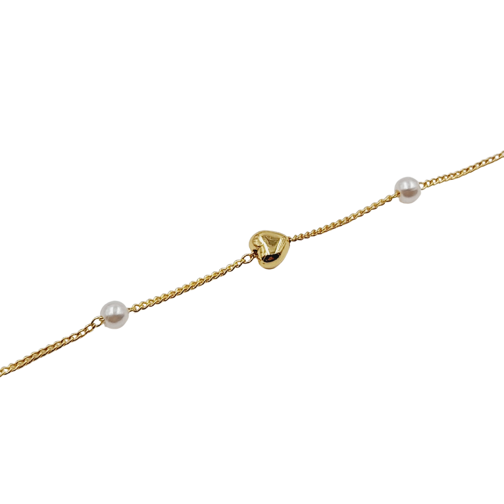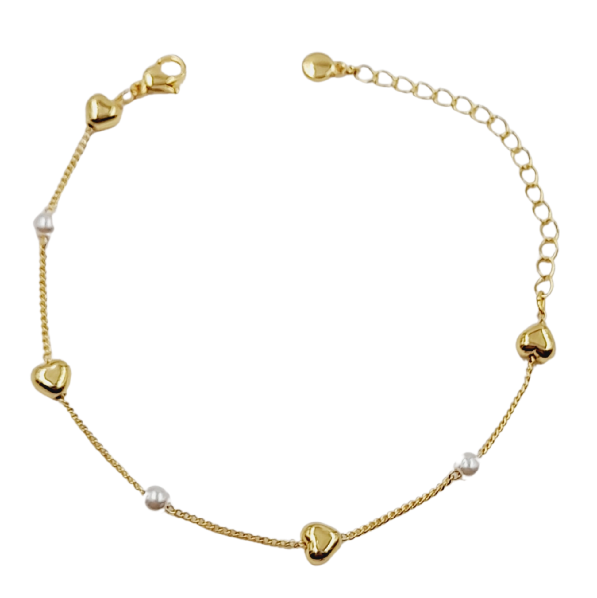 Pulsera con dijes de corazón y perlas enchapado en oro