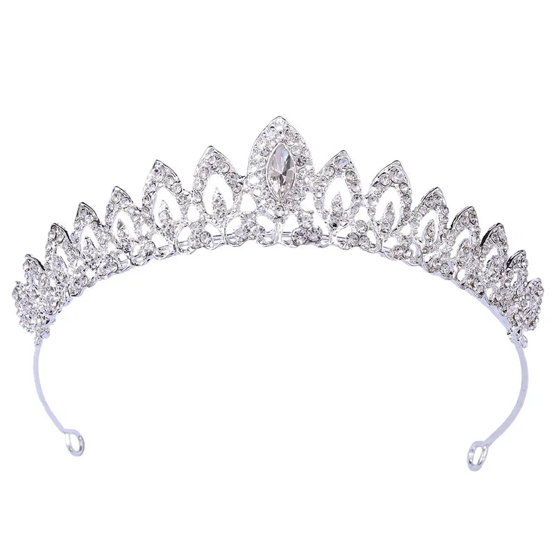 Esta tiara de metal plateado está diseñada con strass blanco, lo que le da un toque elegante y llamativo. Perfecta para ocasiones especiales como bodas, graduaciones y fiestas, esta tiara hará que te sientas como una verdadera princesa. Añade un brillo sutil a tu look y complementa tu peinado con esta hermosa tiara de strass blanco.